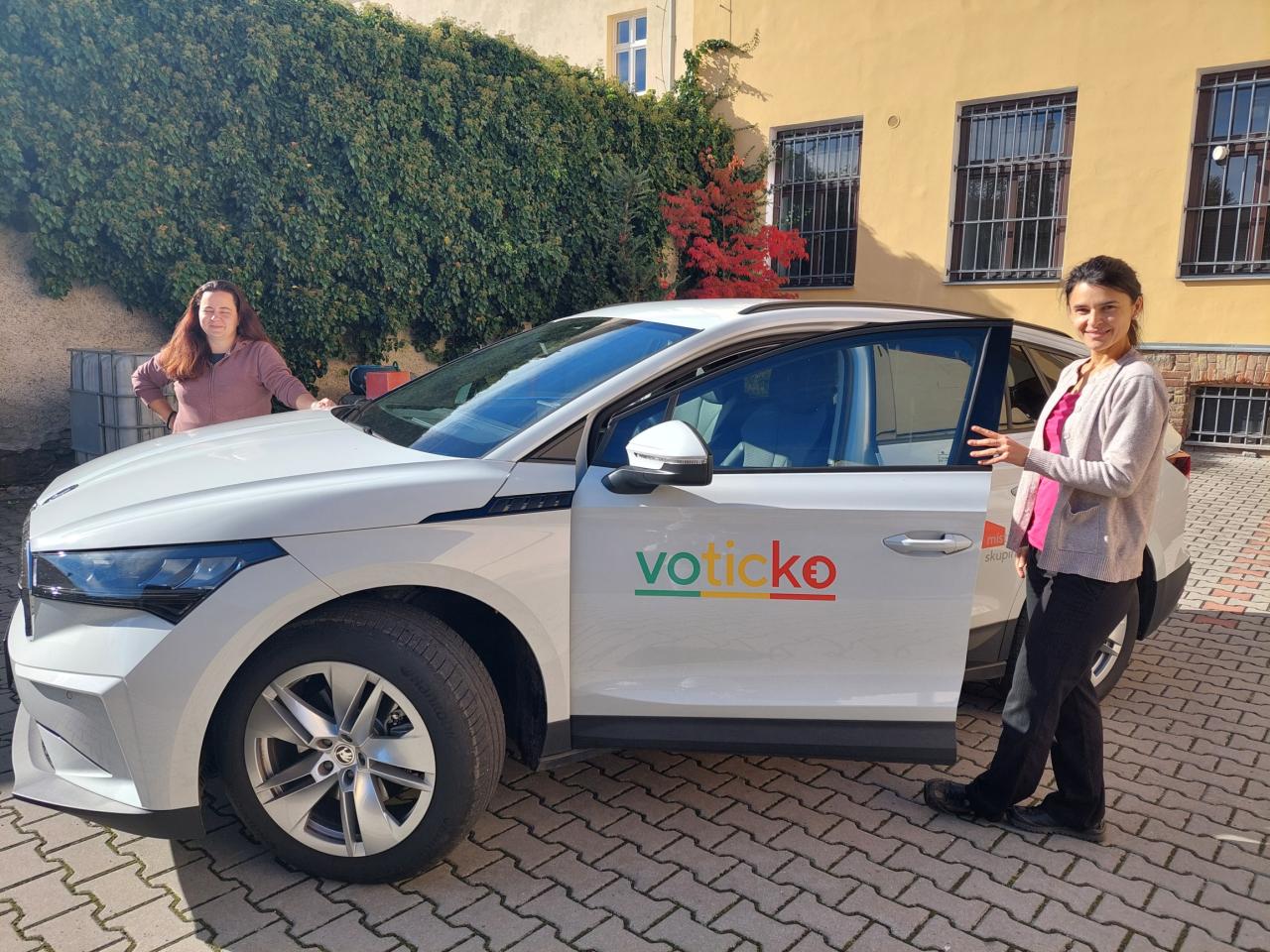 Od dubna potkáte naše sociální koordinátory v elektroautě. Od dneška s novým potiskem VOTICKO